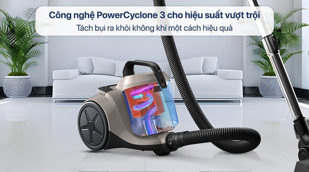 Công nghệ này hoạt động bằng cách tăng tốc không khí trong khoang lốc xoáy để phân tách bụi ra khỏi không khí ngay lập tức. Luồng xoáy mạnh mẽ giúp bụi bẩn rơi thẳng xuống đáy hộp chứa, ngăn chặn tình trạng tắc nghẽn bộ lọc. Nhờ đó, máy luôn duy trì lực hút ở mức tối ưu suốt quá trình dọn dẹp, giúp bạn vệ sinh nhanh chóng mà không cần tốn quá nhiều thời gian.
